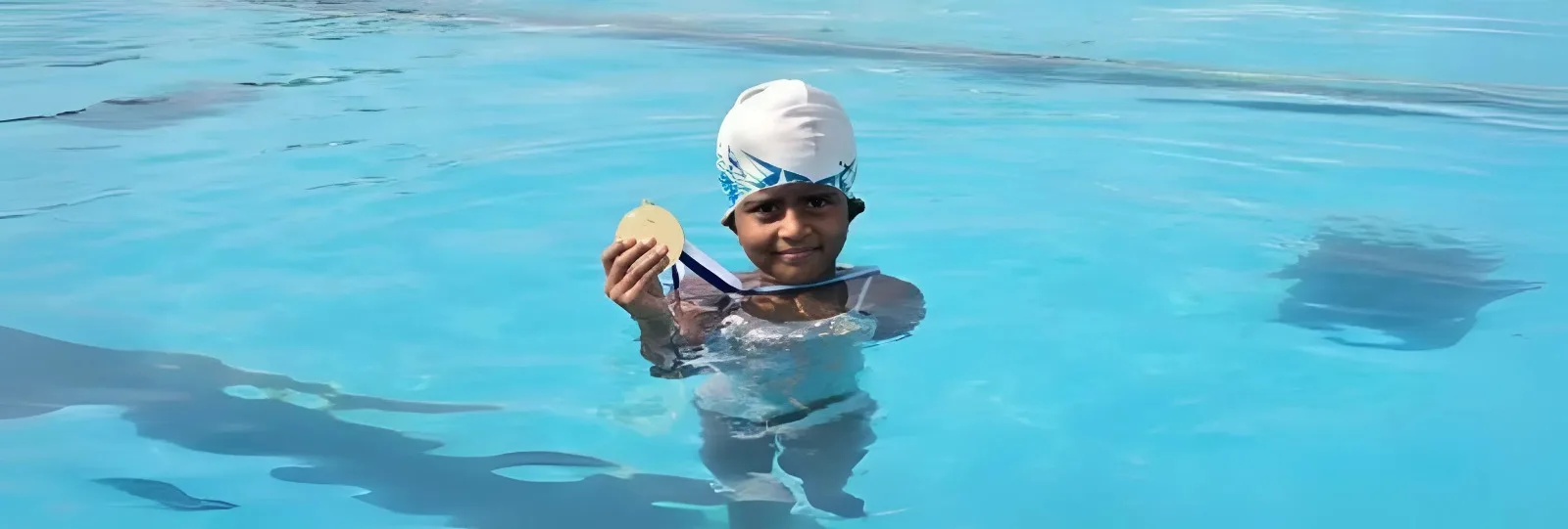 She practices regularly at her school’s swimming pool. “When I visit my hometown, I practice in the Krishna River, which is close by,” says Aashritha, who names mathematics as her favorite subject.
