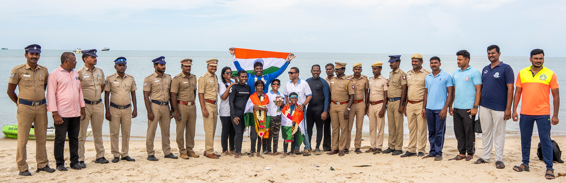 With decades of scuba diving experience under his belt, Aravind felt relatively prepared for the challenges. “Throughout the swim, I kept the kids motivated by engaging in small talk or plays so that they don’t fell the fatigue. I kept them distracted so that they dwell on how far is the finishing line,” he laughs. However, the final four hours proved to be the most challenging as they had to swim against the current. “If we stop swimming, the current would push us back. So, we kept moving forward despite the strong current,” adds Tharaagai, who was welcomed by a cheering crowd at Dhanuskodi.